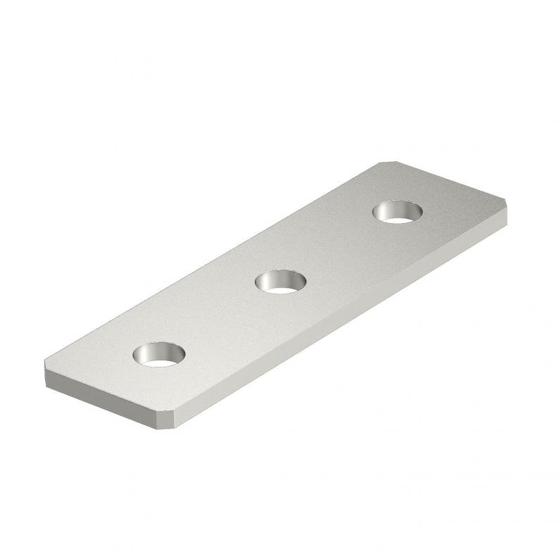 Verbindungsplatte mit 3 Löchern zur Längsverbindung von Profilschienen 41 x 41 mm und 41 x 21 mm.