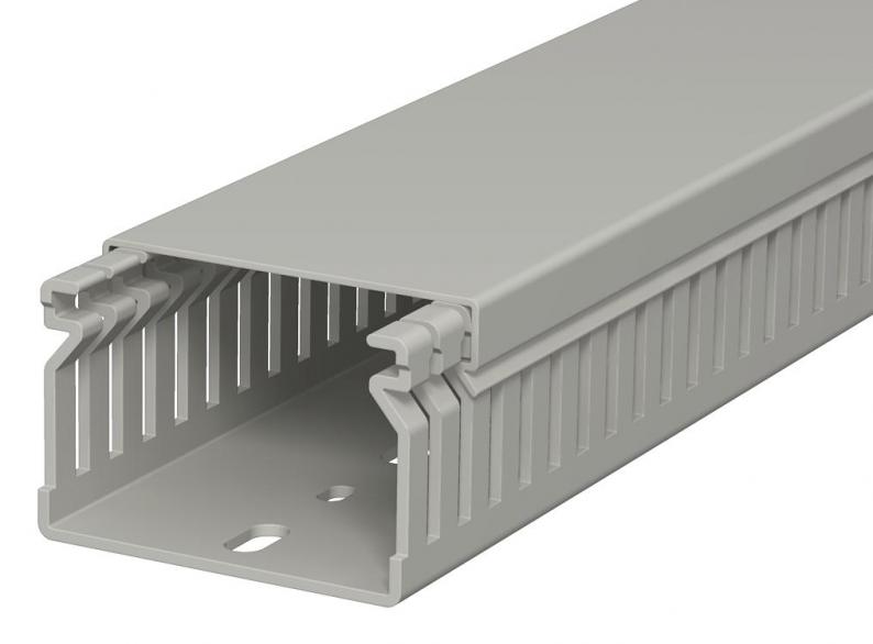 Verdrahtungskanal inkl. Oberteil und Bodenlochung zur waagerechten und senkrechten Verlegung elektrischer Kabel und Leitungen im Schaltschrank. Ausführung als metrischer Kanal. Das Nennmaß der Systemgröße entspricht dem Innenmaß der Kanäle. Das Ausbrechen der Stege erfolgt werkzeuglos. Bodenbündiges Ausführen ist durch Sollbruchstellen möglich. Geprüft nach DIN EN 50085-2-3. Sonderlängen auf Anfrage.