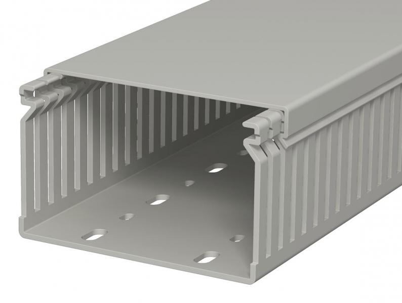 Verdrahtungskanal inkl. Oberteil und Bodenlochung zur waagerechten und senkrechten Verlegung elektrischer Kabel und Leitungen im Schaltschrank. Ausführung als metrischer Kanal. Das Nennmaß der Systemgröße entspricht dem Innenmaß der Kanäle. Das Ausbrechen der Stege erfolgt werkzeuglos. Bodenbündiges Ausführen ist durch Sollbruchstellen möglich. Geprüft nach DIN EN 50085-2-3. Sonderlängen auf Anfrage.