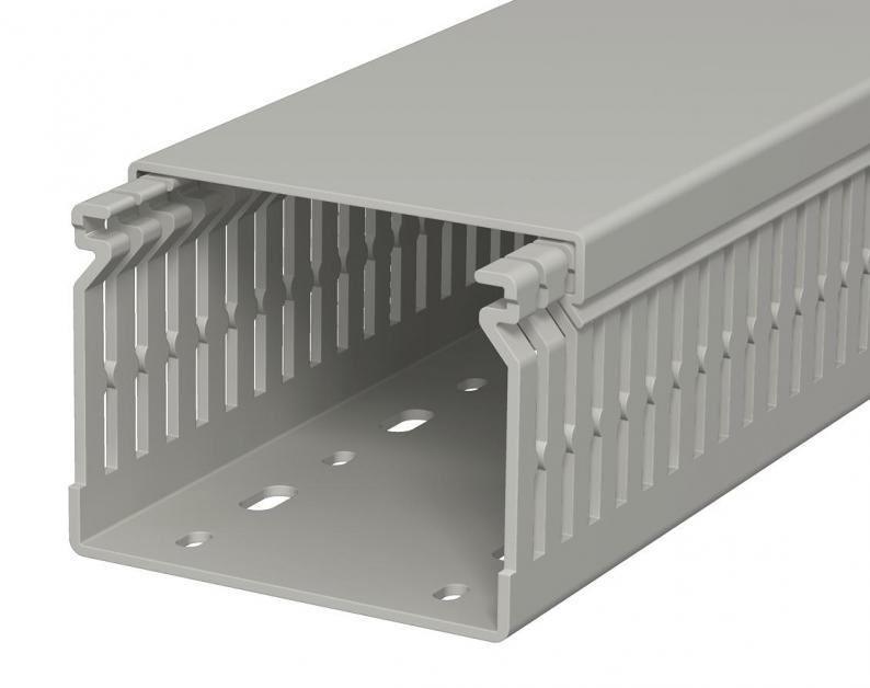 Verdrahtungskanal inkl. Oberteil und Bodenlochung zur waagerechten und senkrechten Verlegung elektrischer Kabel und Leitungen im Schaltschrank. Ausführung als metrischer Kanal. Das Nennmaß der Systemgröße entspricht dem Innenmaß der Kanäle. Das Ausbrechen der Stege erfolgt werkzeuglos. Bodenbündiges Ausführen ist durch Sollbruchstellen möglich. Verjüngungen in den Seitenschlitzen verhindern das Herausfallen der Leitungen. Geprüft nach DIN EN 50085-2-3. Sonderlängen auf Anfrage.