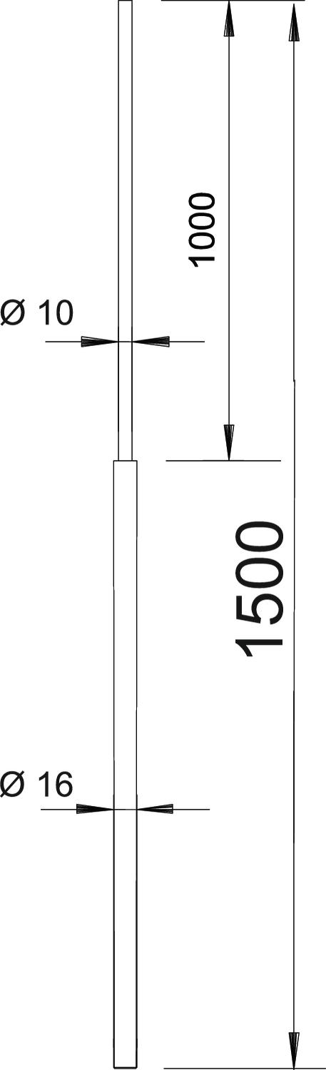 • letzter Meter verjüngt von Ø 16 mm auf Ø 10 mm, Material: AlMgSi
