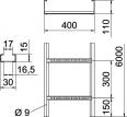 Weitspann-Kabelleiter mit gelochtem Seitenholm in 110 mm Seitenhöhe. Befestigung von Kabeln und Leitungen mit Bügelschelle Typ 2056.