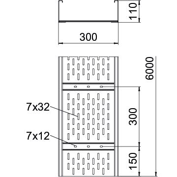 Weitspannkabelrinnen-System, gelocht, mit der Seitenhöhe 110 mm.