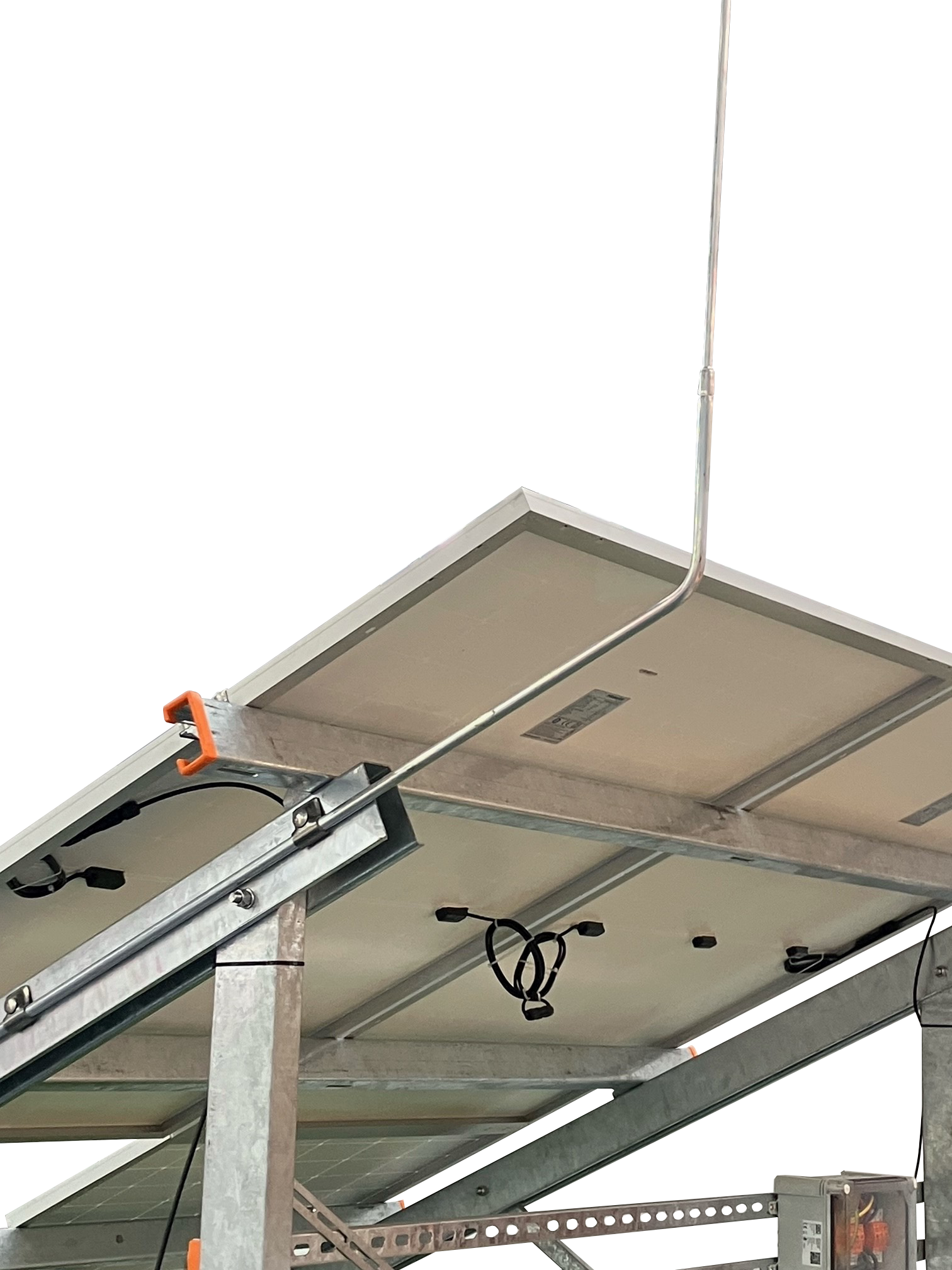 Abgewinkelte Fangstange mit Befestigung für PV-Montagesysteme